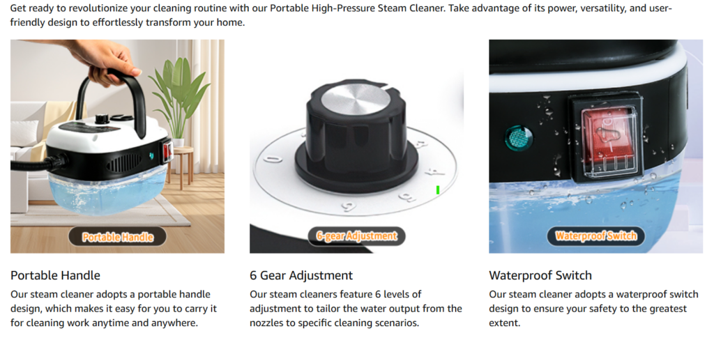 From floors and tiles to kitchens, bathrooms, upholstery, and car interiors, this steam cleaner sanitizes and refreshes while protecting your surfaces. No harsh chemicals, no residue—just pure steam power for a healthier and safer environment.